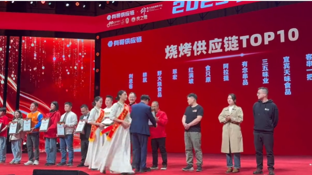 天味小香肠现场荣获【烧烤供应链TOP10】奖项!这一刻,荣光照亮37载匠心征途!